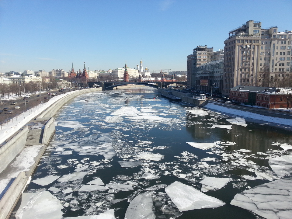 Дом на набережной и лёд на Москве-реке